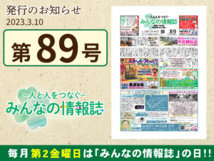 第88号(2023年2月発行) 投稿日 2023年2月10日 更新日 2025年9月18日 著者 みんなの情報誌 カテゴリー 2023年発行 カテゴリー みんなの情報誌 みんなの情報誌 2023年2月10日発行 vol.88-2023.2-1(ブラウザで見る)ダウンロード vol.88-2023.2-2(ブラウザで見る)ダウンロード vol.88-2023.2-3(ブラウザで見る)ダウンロード vol.88-2023.2-4(ブラウザで見る)ダウンロード 2023 この記事を書いた人 みんなの情報誌 記事一覧 ウェブサイト