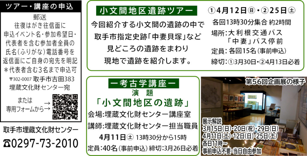 取手市埋蔵文化財センターで、第56回企画展地域の遺跡シリーズの第1弾として「小文間地区の遺跡」が4月26日(日)まで開催されている。